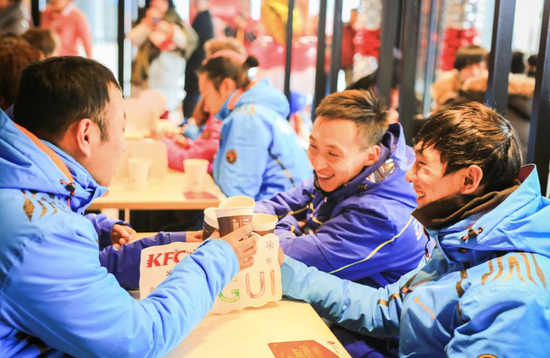 12月15日,肯德基云顶餐厅聚集了最时尚的一群雪友,滑雪场沙龙开始了。在激烈刺激的极限运动之后,雪友卸下装备,聚集在肯德基餐厅,切磋滑雪那些事。初学者适合什么样的滑雪板,长度和软硬要什么程度的。雪季临近,选装备的人也越来越多,滑雪板的板心材料是什么材质的好;什么色系的滑雪服在滑雪场上最抢眼,雪友们聊得尽兴。手里捧着一杯热咖啡,挡住了雪场的寒气。滑雪场里的肯德基餐厅,更像雪友们的大本营,是个交流和分享的据点,更是留下美好回忆的场所。