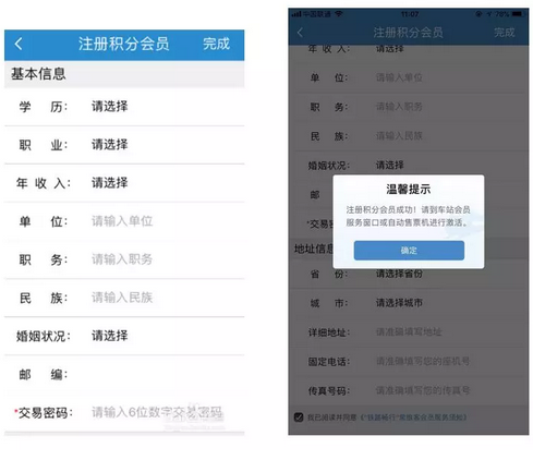 点击填写好个人资料,完成注册后,你会看到提示信息,需要去人工售票窗口或自动售票机进行激活。