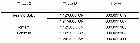 质检总局在上述通报中表示,质检总局对此高度重视,获悉欧盟通报后立即组织开展核查。现已查明,欧盟通报所涉及产品中,对华出口的为Lypack(注册号NL Z0238 EC)生产的润贝婴儿配方乳粉(Rearing Baby),生产批号为0000011087和0000011079。